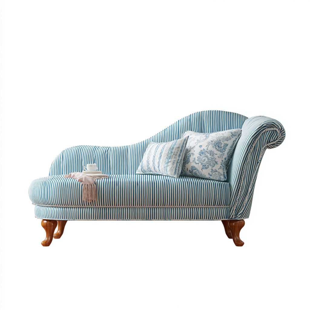 Chaise longue pensata per ambienti residenziali come soggiorno, zona lettura o spazio relax. La forma allungata consente una posizione distesa confortevole, mentre il profilo elegante valorizza l'arredamento con un'estetica classica e armoniosa.